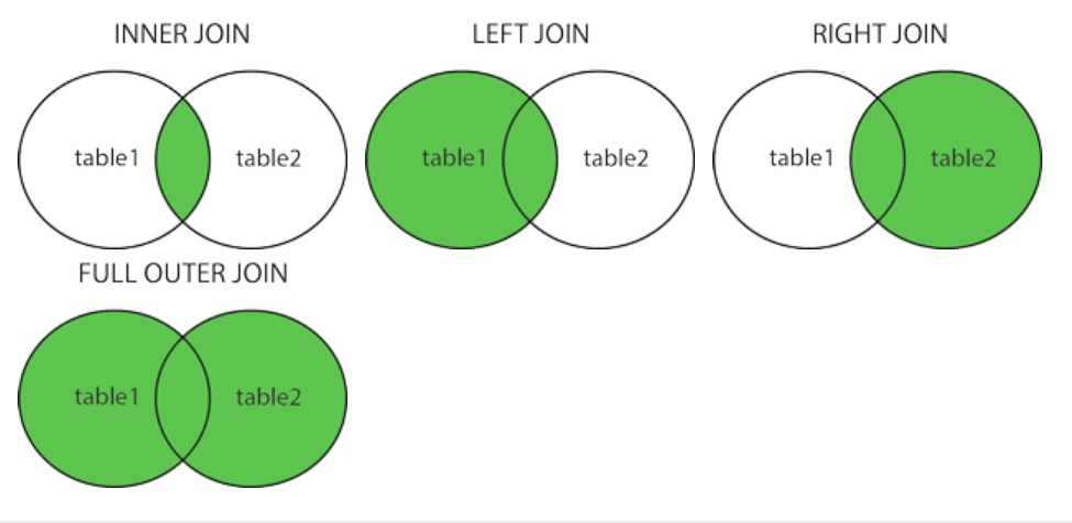 - FULL (OUTER) JOIN: Returns all records when there is a match in either left or right table