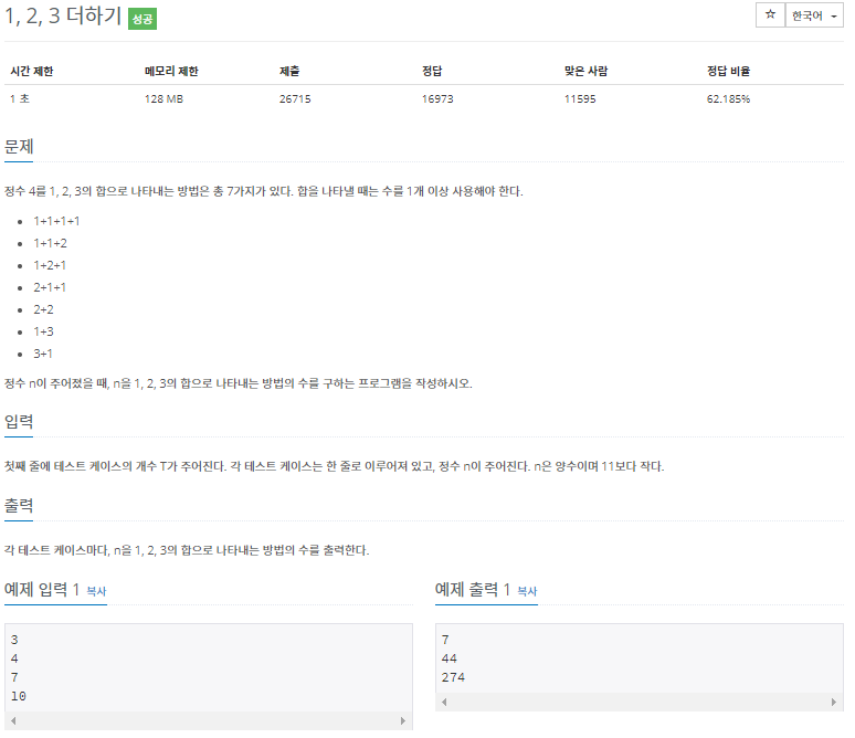 이문제는 다이나믹 프로그래밍으로 분류되는 문제다.