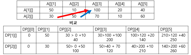 빨간색 대각선 파란색 대각선 비교 더 큰것을 입력한다.